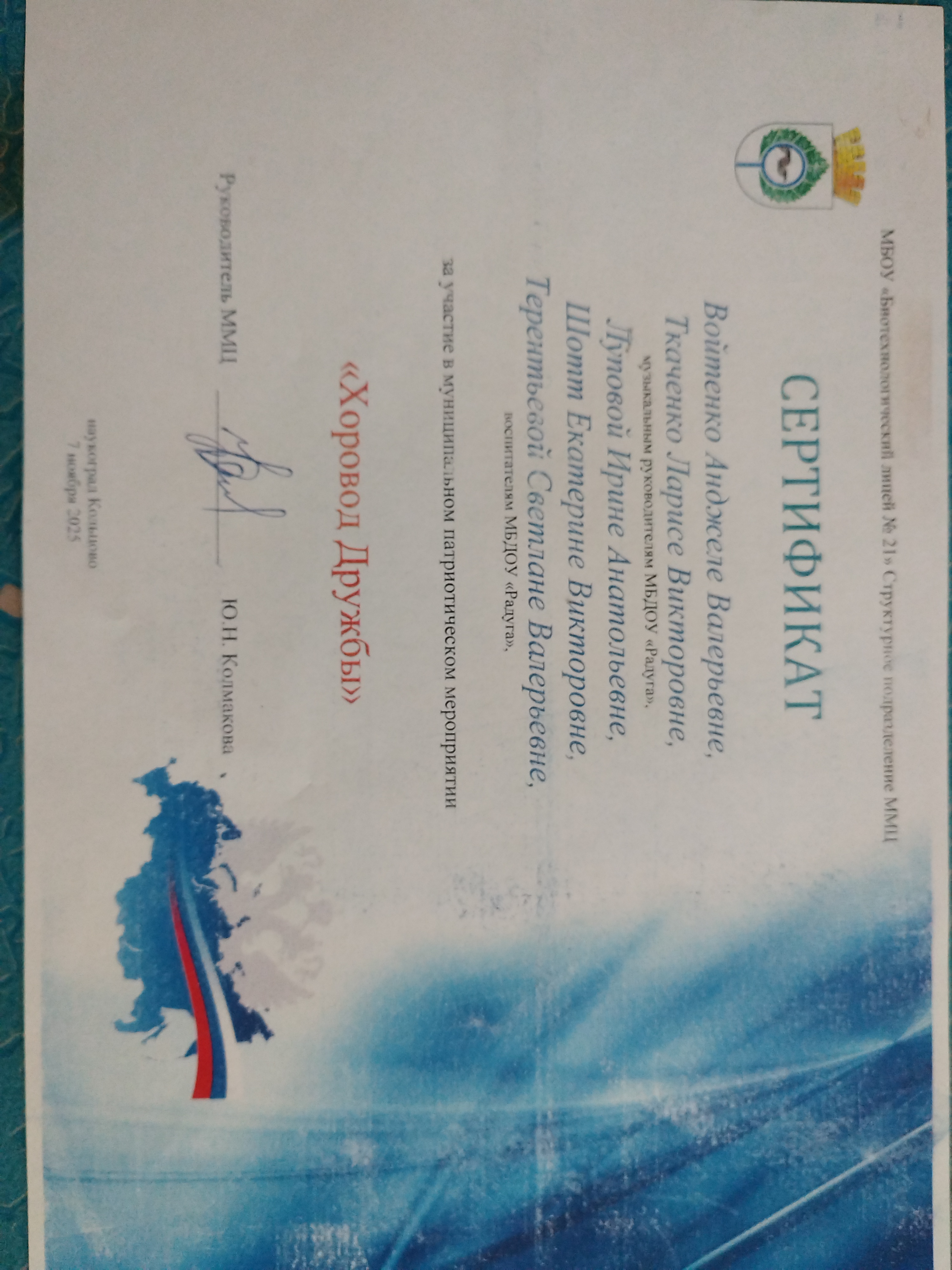 Сертификат за участие в муниципальном патриотическом мероприятии